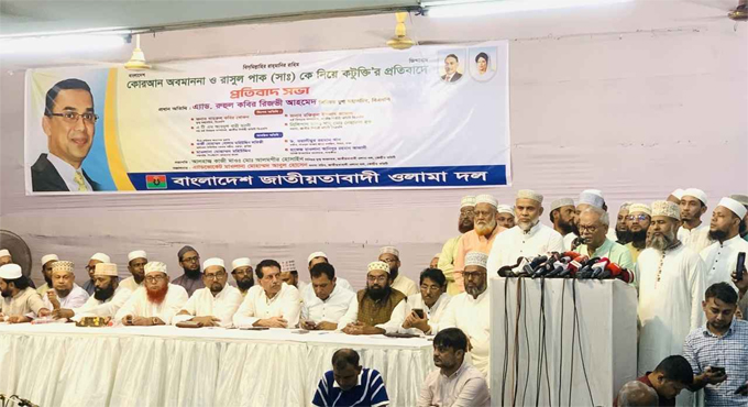 মঙ্গলবার (১৪ অক্টোবর) রাজধানীর জাতীয় প্রেসক্লাবের অডিটরিয়ামে কোরআন অবমাননা ও রাসুল পাক (সা.)-কে নিয়ে কটূক্তির প্রতিবাদে আয়োজিত আলোচনা সভায় তিনি এ কথা বলেন।