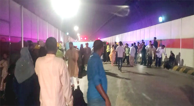 এদিকে সামাজিক যোগাযোগ মাধ্যমে ছড়িয়ে পড়া একটি ভিডিও ক্লিপে দেখা যায়, টানেলের ভেতরে একটি বাস উল্টে পড়ে আছে। ওই বাসের অনেক যাত্রীকে চিৎকার ও ছোটাছুটি করছে।