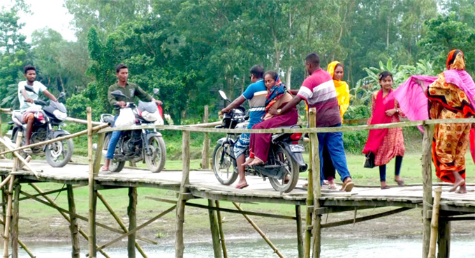 স্থানীয় বাসিন্দাদের উদ্যোগে নির্মিত নড়বড়ে বাঁশ ও কাঠের সেতুটিই এখন এই এলাকার মানুষের একমাত্র ভরসা। তবে ঝুঁকিপূর্ণ এই সেতু পার হতে গিয়ে প্রতিনিয়ত সমস্যায় পড়তে হচ্ছে তাদের।
