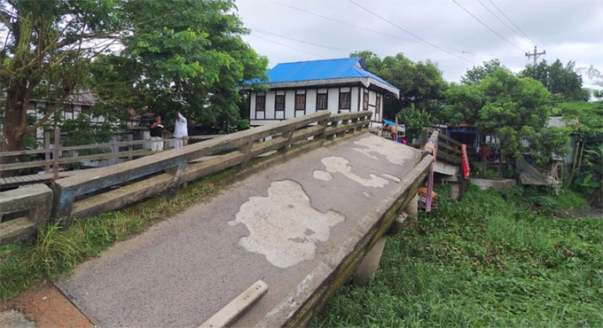 সরেজমিনে দেখা যায়, হেলে পড়া সেতু দিয়ে শ্রমিকেরাও ঝুঁকি নিয়ে নির্মাণসামগ্রী পার করছেন।
