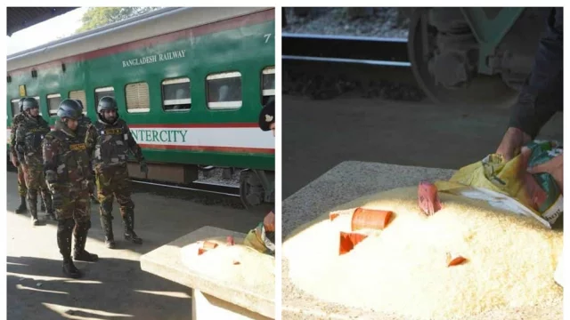 একতা এক্সপ্রেসে সেনাবাহিনীর অভিযান : চালের বস্তায় পিস্তল ও ককটেল উদ্ধার
