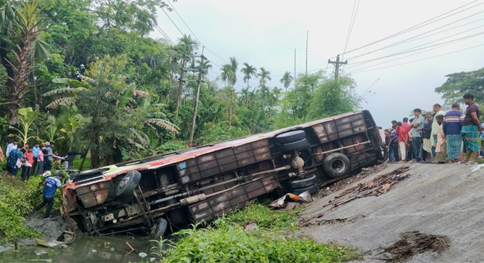 ভোলায় নিয়ন্ত্রণ হারিয়ে যাত্রীবাহী বাস উল্টে পড়ল খাদে