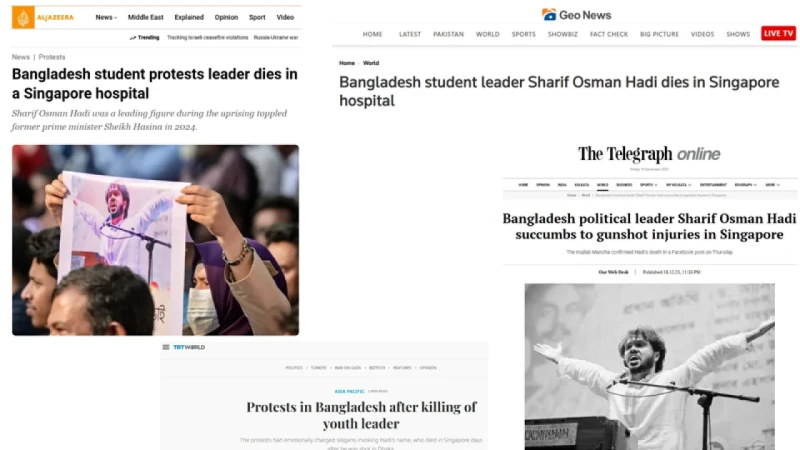 বিশ্ব মিডিয়ায় ওসমান হাদির মৃত্যুর খবর
