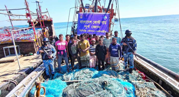 সেন্টমার্টিনে ট্রলিং জালসহ ১৬ জেলেকে আটক