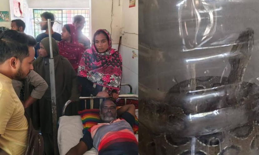 রাসেলস ভাইপারের কামড় খেয়ে জীবিত সাপ নিয়ে হাসপাতালে কৃষক