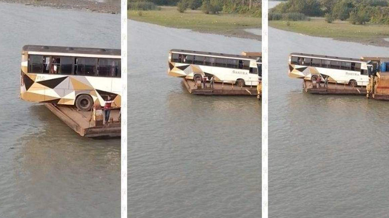 যাত্রীসহ বাসের এক তৃতীয়াংশ ফেরির বাইরে, ছবি ভাইরাল